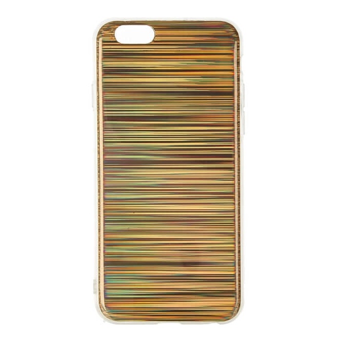 Луксозен твърд гръб със силиконов кант за Apple iPhone 6 / iPhone 6S - златист / холограма