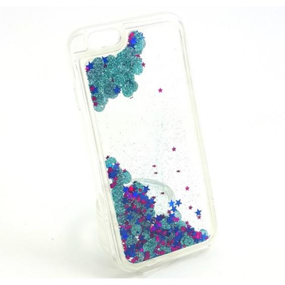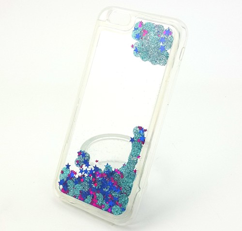 Луксозен твърд гръб 3D за Apple iPhone 6 / iPhone 6S - прозрачен / брокат / тюркоаз