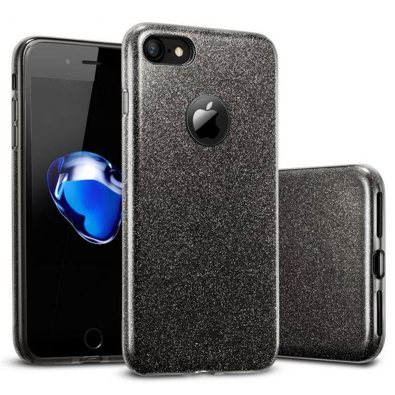 Силиконов калъф / гръб / TPU за Apple iPhone 6 / iPhone 6S - черен / брокат