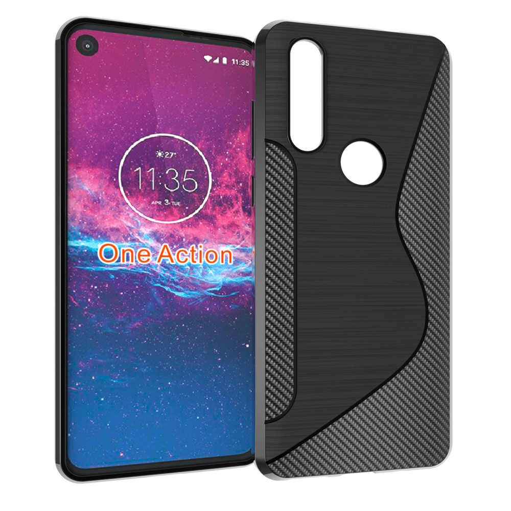 Луксозен силиконов калъф / гръб / TPU S - Line за Motorola One Action - черен / Carbon