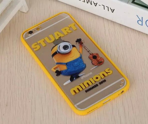 Твърд гръб / капак / със силиконов кант TPU Hybrid за Apple iPhone 6 / iPhone 6S - прозрачен / Minions with guitar