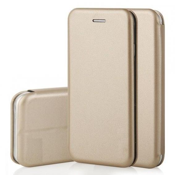 Луксозен кожен калъф Flip тефтер със стойка OPEN за Nokia 3.1 Plus - златист