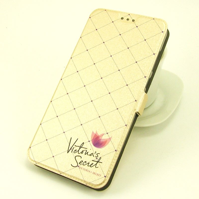 Кожен калъф Flip тефтер Flexi със стойка за Nokia 6 2017 - златист / Victoria`s Secret