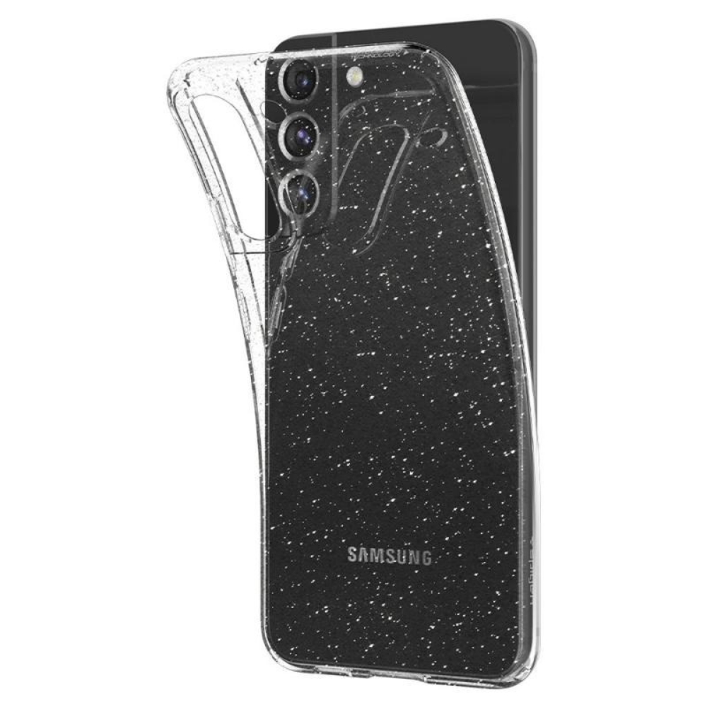 - Силиконовият кейс Shine има класически външен вид, но с добавен брокат.