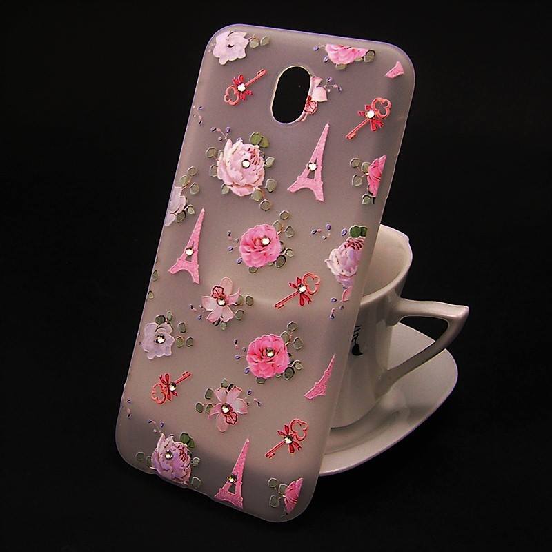 Луксозен силиконов калъф / гръб / TPU с камъни за Samsung Galaxy J3 2017 J330 - Айфелова кула и цветя