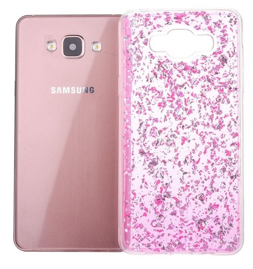 Силиконов калъф / гръб / TPU 3D за Samsung Galaxy J5 2016 J510 - розов / прозрачен / блестящи стружки