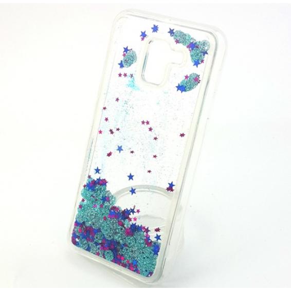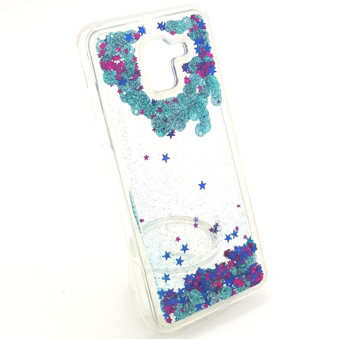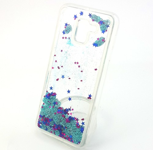 Луксозен твърд гръб 3D за Samsung Galaxy J6 2018 - прозрачен / брокат / тюркоаз