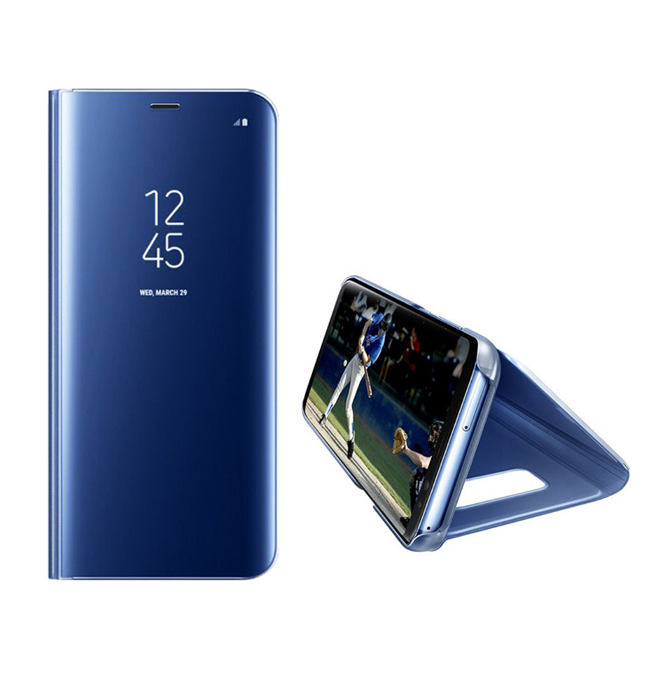 Луксозен калъф Clear View Cover с твърд гръб за Samsung Galaxy J7 2017 J730 - син