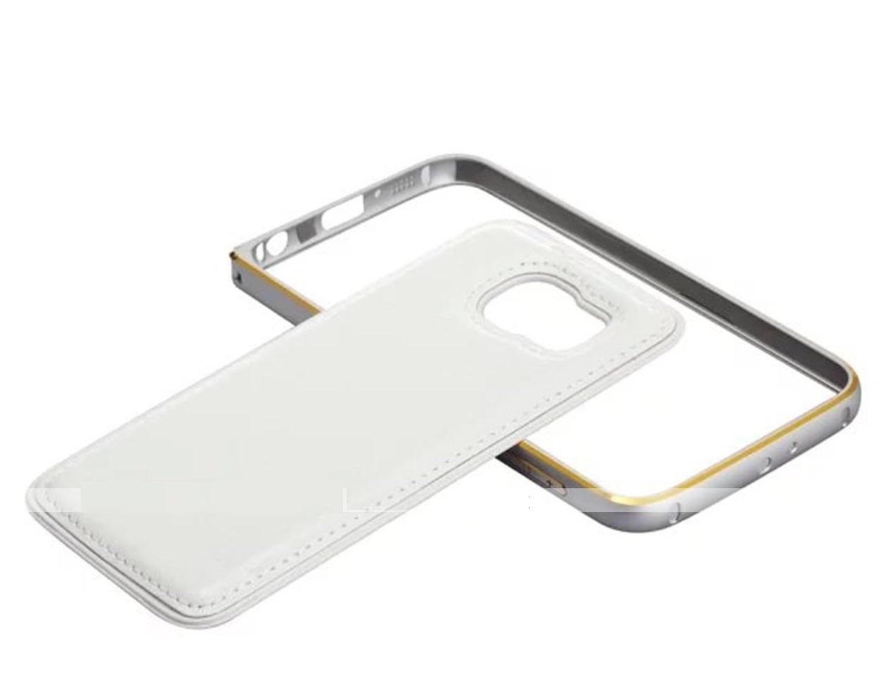 Метален бъмпер / Bumper / с кожен гръб за Samsung Galaxy S6 Edge G925 - бял