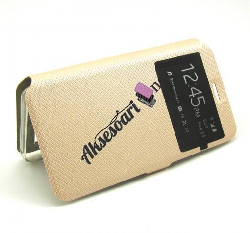Кожен калъф Flip тефтер S-View със стойка за Samsung Galaxy S6 Edge G925 - златист / ромбове / Flexi