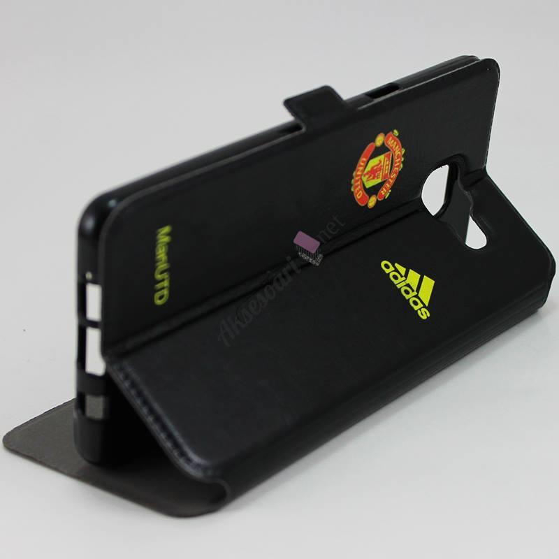 Кожен калъф Flip тефтер Flexi със стойка за Samsung Galaxy S7 G930 - Manchester United / Adidas / черен