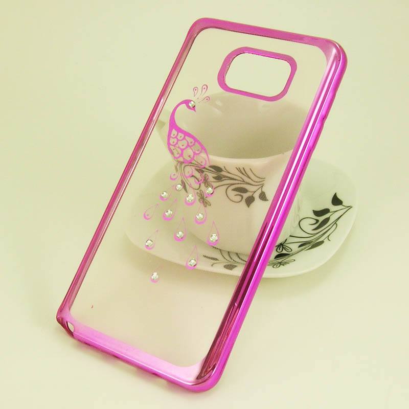 Луксозен силиконов калъф / гръб / TPU с камъни за Samsung Galaxy S7 G930 - прозрачен / паун / цикламен кант
